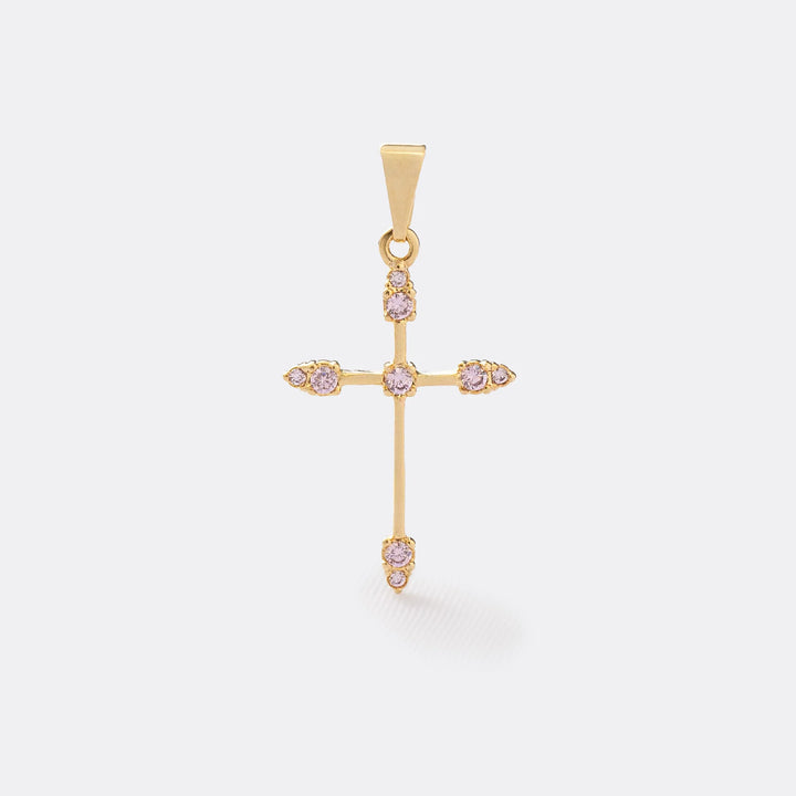 Dije Cruz Tubular 9 circonias ROSADO